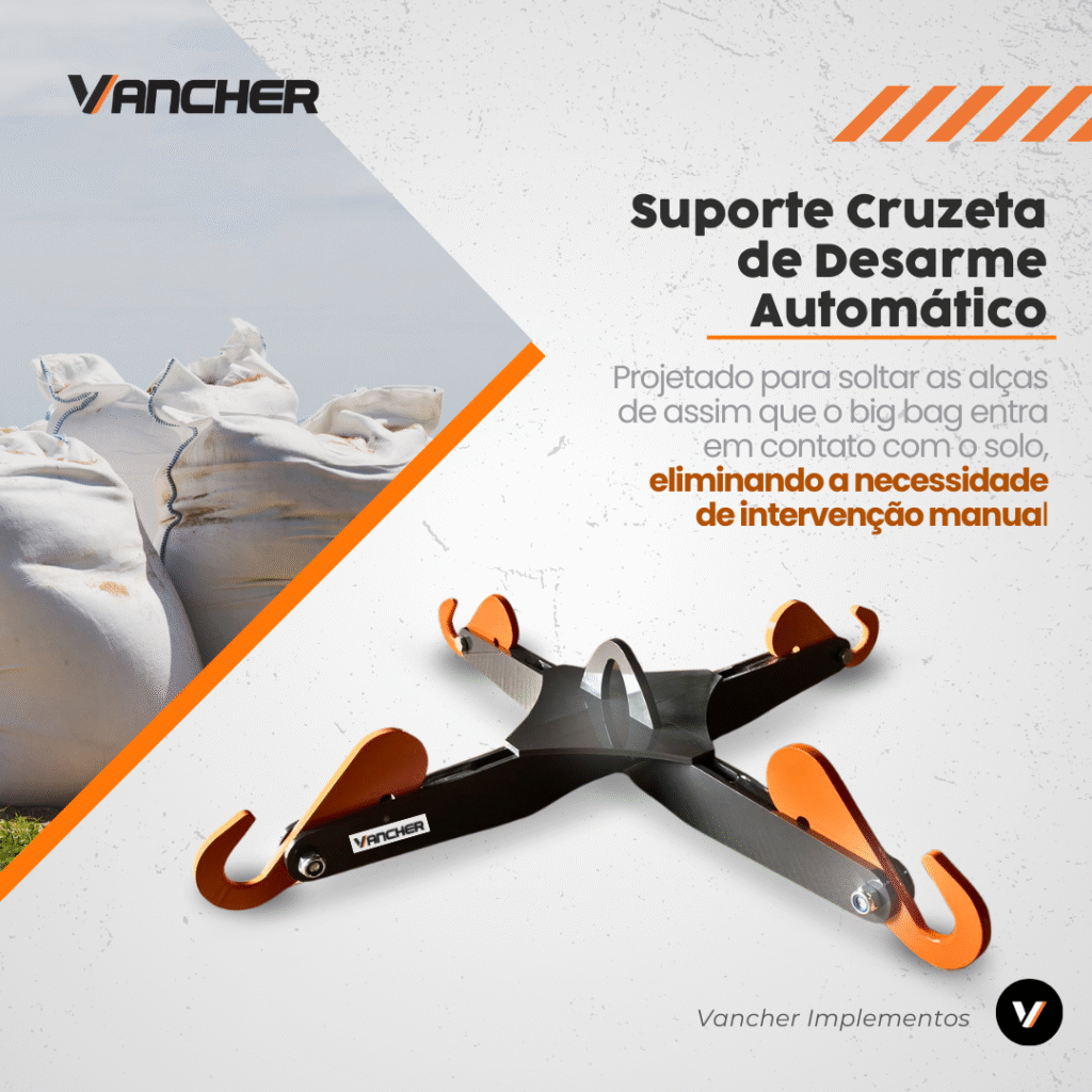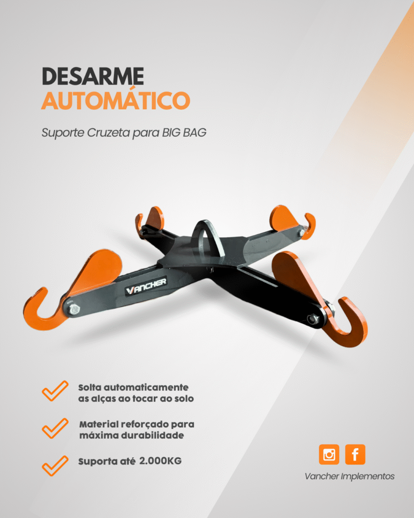 "A cruzeta para Big Bag com desarme automático foi desenvolvida para facilitar o manuseio de cargas com máxima eficiência, segurança e praticidade no campo ou na indústria.”