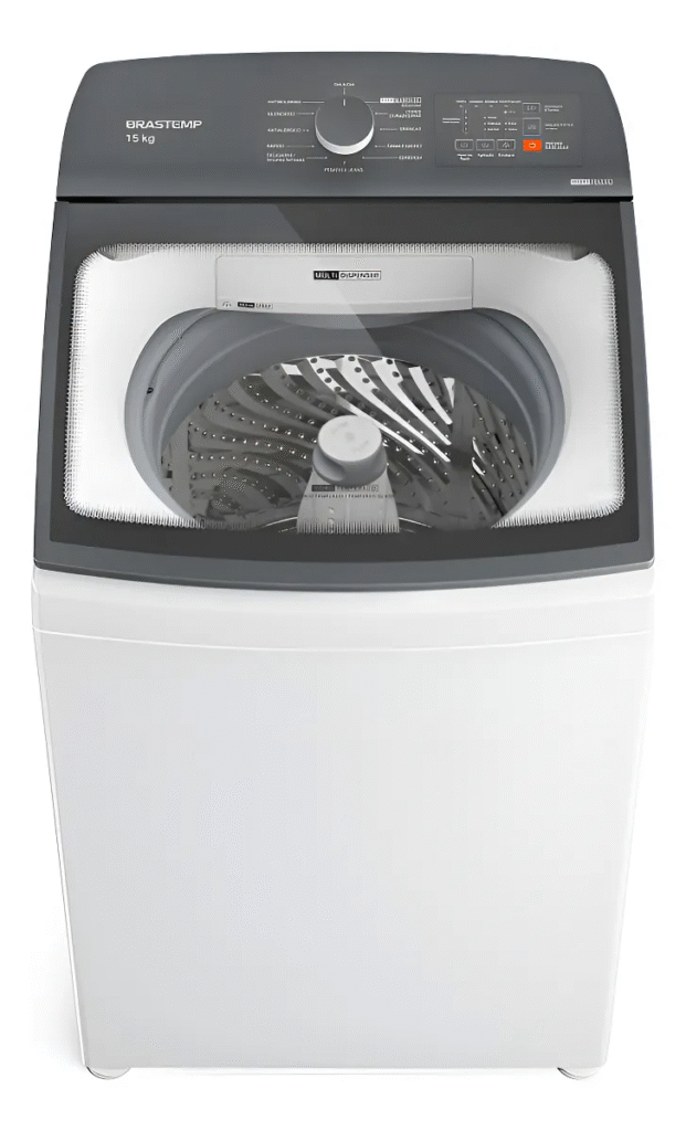 - Capacidade grande (15 kg): ideal para famílias ou quem lava bastante roupa de uma vez.
